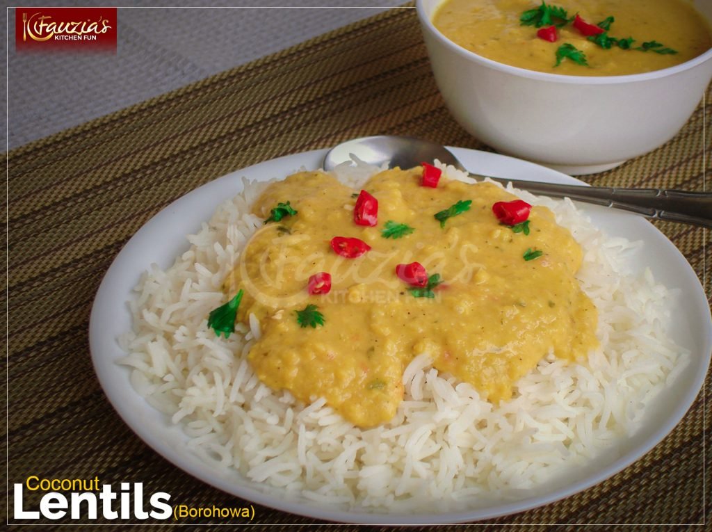 Borohowa/Borohoa is an East African lentil dish. What makes it different and, in my opinion, tastier than other kinds of lentil dishes is that this version incorporates coconut milk in the recipe. The results are therefore richer, creamier and incredibly delicious. The dish is served over plain rice or with bread/chapatis/parathas and sometimes a side of meat or fish.