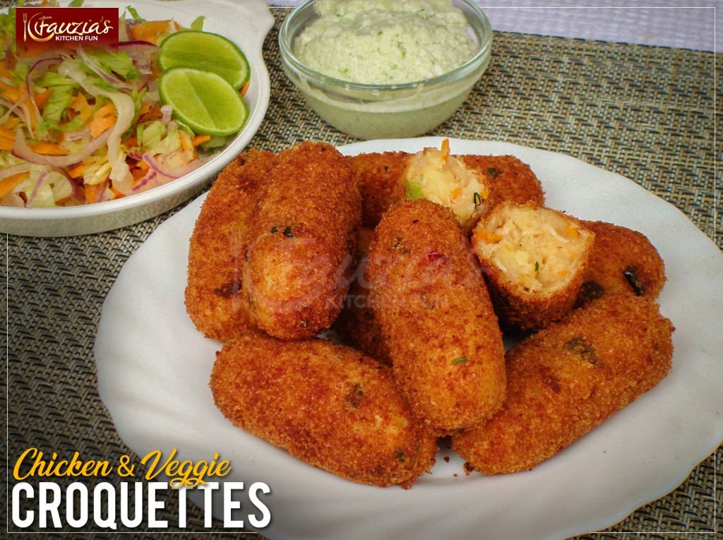 - Heat the oil, then add the onions, capsicum and carrot. Cook them down for just a couple of minutes to slightly soften them. Then add them to the mashed potatoes, add the green chillies, salt, lemon, chilli powder, black pepper, chopped coriander and the shredded chicken. Mash together and adjust the spices n salt to your taste.Shape the croquettes, cover and refrigerate them for at least half an hour, or several hours preferably if possible.When ready to fry, beat one egg with a tsp. of water. Put some breadcrumbs in another plate. Dip the croquettes in the egg then roll one at a time in the breadcrumbs until well coated. Fry on medium heat until golden and crispy. You can shallow fry if you like, but I prefer deep frying these to get an even perfect colouring.Serve with chutney of your choice and enjoy! 🙂
