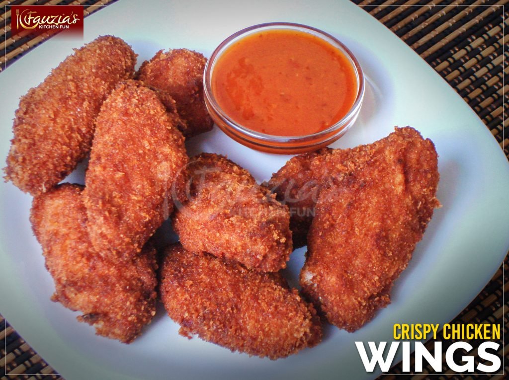 - Mix all the marinade ingredients together and allow the chicken wings to marinate for at least an hour or refrigerate up to overnight.Put the wings with the marinade into a pan and add about a quarter cup of water. Simmer over medium low heat whilst covered for about 10 minutes. Dry off the excess water if need be. The wings do not need to be FULLY cooked as they will be fried to finish them off.Remove the wings from the pan and allow them to cool off completely. Once completely cool, beat an egg with the milk and salt/pepper. Dip the wings one at a time into the egg mixture, then coat with breadcrumbs. Deep fry them over medium heat until golden and crispy.Serve with a dip of your choice.Enjoy!
