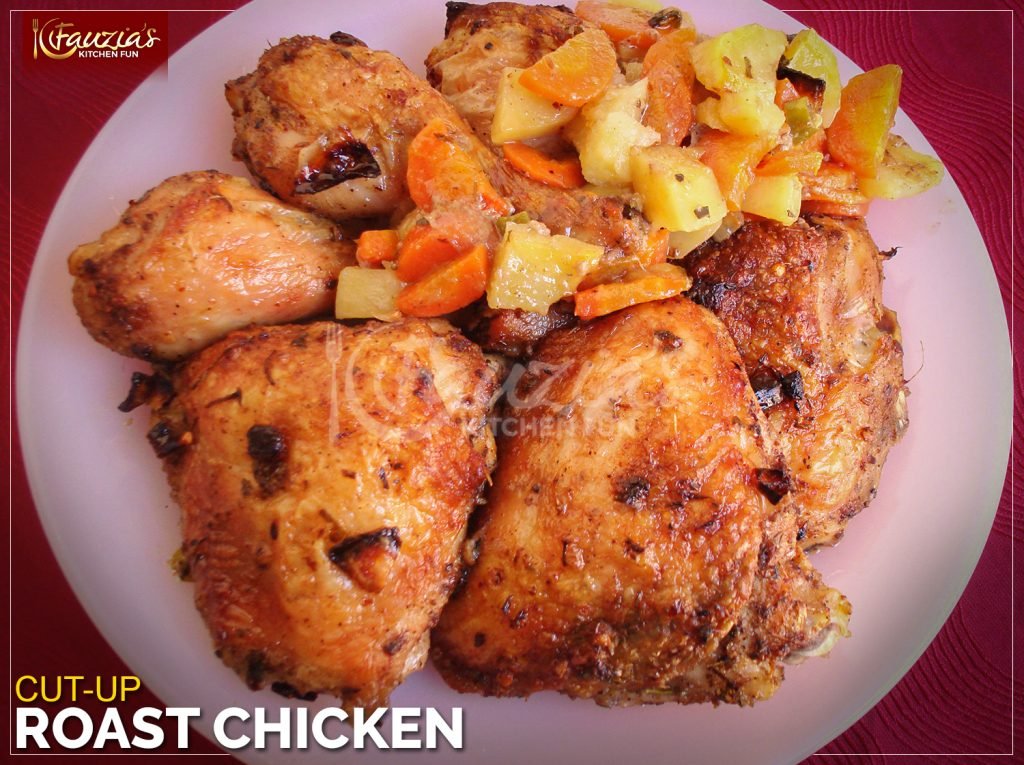 - Put your chicken pieces in a container. I just use a big ziploc bag. Add the ‘Ingredients for Chicken Marinade’ in there.If you are using a freezer/ziploc bag, seal it up and just shake or massage the marinade into the chicken. Otherwise just mix everything with the chicken and refrigerate. This marinated chicken should be refrigerated for up to 2 days. At least overnight if you don’t have enough time. Whenever you remember, just get the chicken packet out and shake it up or give it a quick mix.When ready to bake, get the chicken out of the fridge and allow it to come to room temperature. This takes about 30 mins to an hour.Place the potatoes and carrot cubes in a foil-lined oven safe dish. I use a 9×11 pyrex. Then put the chicken pieces on top of the veggies and drizzle the marinade all over everything.Preheat the oven at 200C.Put your dish in the oven and allow the chicken to bake for 40 minutes. Then reduce the temperature to 160C and let it continue baking for another 20 minutes.Check to make sure the chicken is done. You can do this by using a meat thermometer or if you pierce the chicken, the juices should be clear.Remove the dish from the oven and cover it with foil. Let it stand for about 10 minutes before serving.Serve with the veggies and a side salad, maybe some dinner rolls too if you like.Enjoy! 🙂