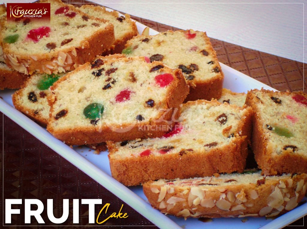 - Preheat oven at 170C. Grease the line of the loaf pan, then dust it with flour. Recommended size is a 9x5x3 inch pan.Remove 1 tbsp. from the flour and sprinkle it over the dried fruits and mix. This will help ensure that they do not sink to the bottom of the back during baking. Set aside.Add the vanilla essence in the milk. Set aside.Sieve/sift the rest of the flour with the baking powder and salt. Then add the powdered almonds and still well. Set aside.Beat the butter/margarine with the powdered sugar in a big bowl until light and fluffy. Be sure to beat them well because this cake requires very little baking powder so this stage is crucial in ensuring you have a light and fluffy cake.Once the butter and sugar are light and creamy, add the eggs one at a time, beating well after each addition and scraping down the sides of the bowl occasionally. The mixture will appear curdled but do not worry about that, it will smoothen out when the flour is added later.Add the flour and milk/vanilla in three installments, combining gently between each addition, starting with the flour, then the milk and ending with the flour again. Make sure not to over mix the batter at this stage.Finally add the dried fruits and chopped cherries and gently stir them in with a spatula. Pour this batter into your prepared loaf pan. Sprinkle the almond flakes over the cake and then bake in the preheated oven at 170C for about 45 minutes to an hour or until skewer inserted into the cake comes out clean. During baking, if you find that the top is colouring too quickly you can cover the cake lightly with a piece of foil midway through baking.Place the loaf pan on a wire to coll slightly and then turn the cake out of the pan and allow it to cool completeley before slicing. The loaf will keep well in an airtight container for up to 3 days, and longer if refrigerated.Enjoy! 🙂