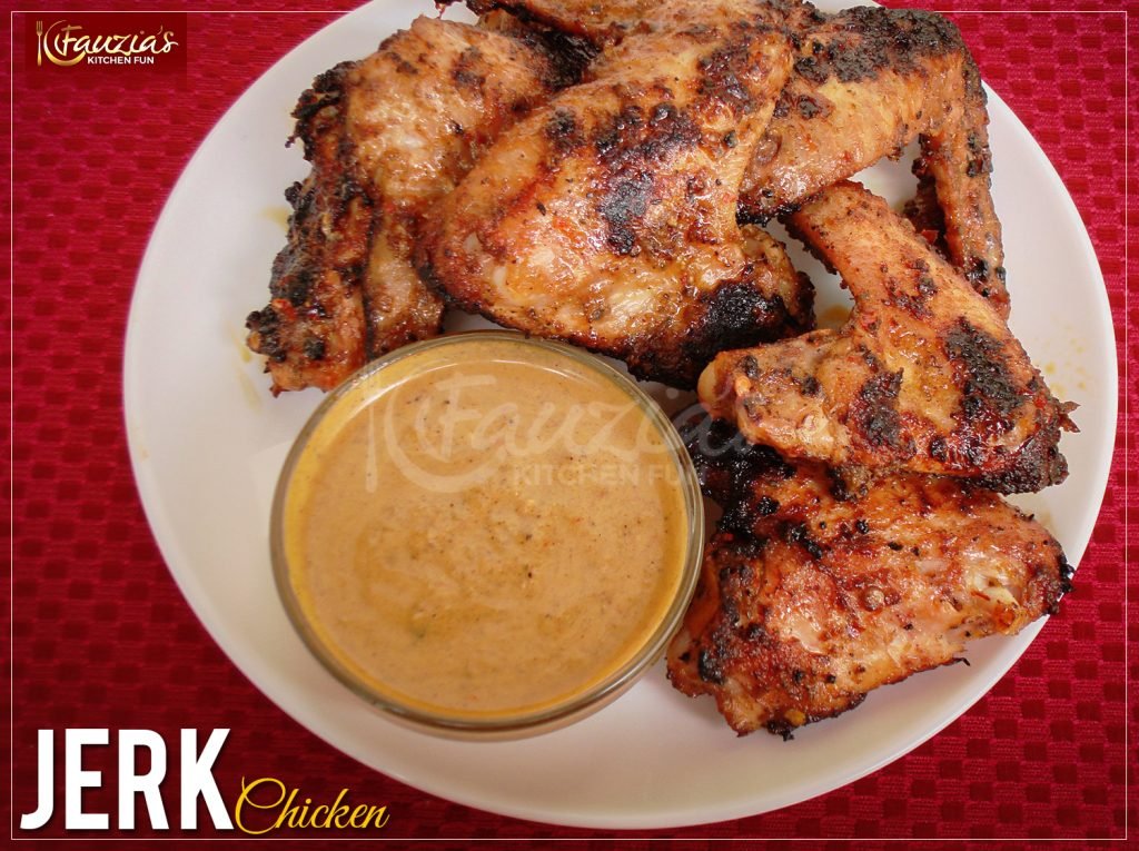 Jerk is a Jamaican style of cooking where cuts of meat are marinated in a spicy blended mixture and then grilled over hot coals. The dish is usually served with rice and beans. I have used wings in this case, however the recipe works well with any cuts of chicken, preferably on the bone.