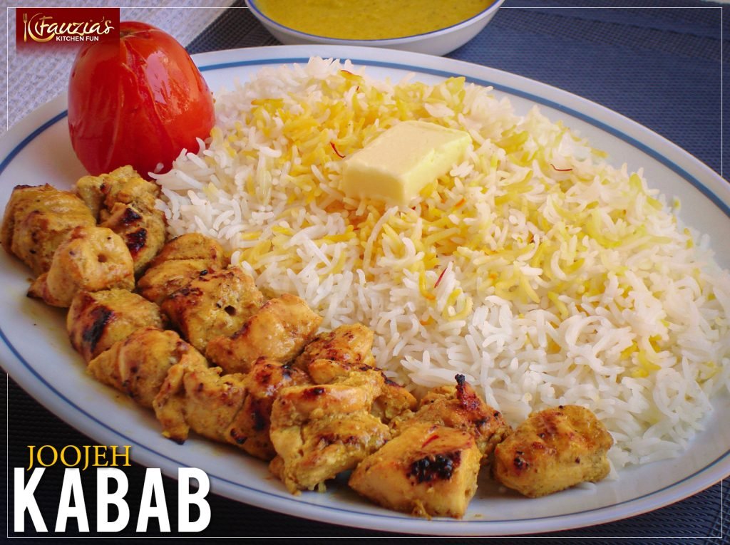 Joojeh (or Jujeh) Kabab is a moist, tender and delicious Persian grilled chicken dish. Saffron is in most cases the star ingredient in preparing this dish, and it adds both a depth of flavour and a lovely colour to the chicken. Jojeh kabab is normally served with saffron rice (chelo) or with naan/lavash bread.