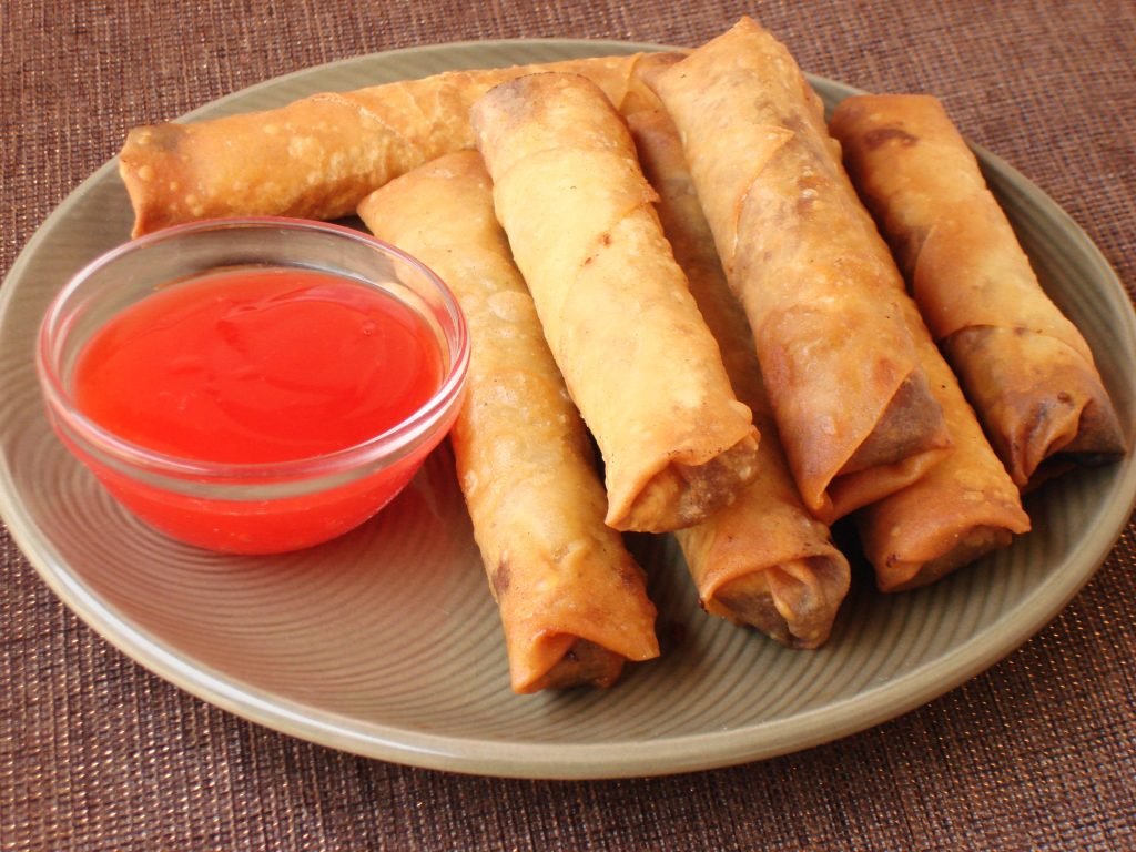 Lumpia is a Filipino version of spring rolls, where the filling is mostly some form of minced meat with veggies. This starter is deep fried and served with a dip of some sort, mostly soy sauce or chilli sauce.