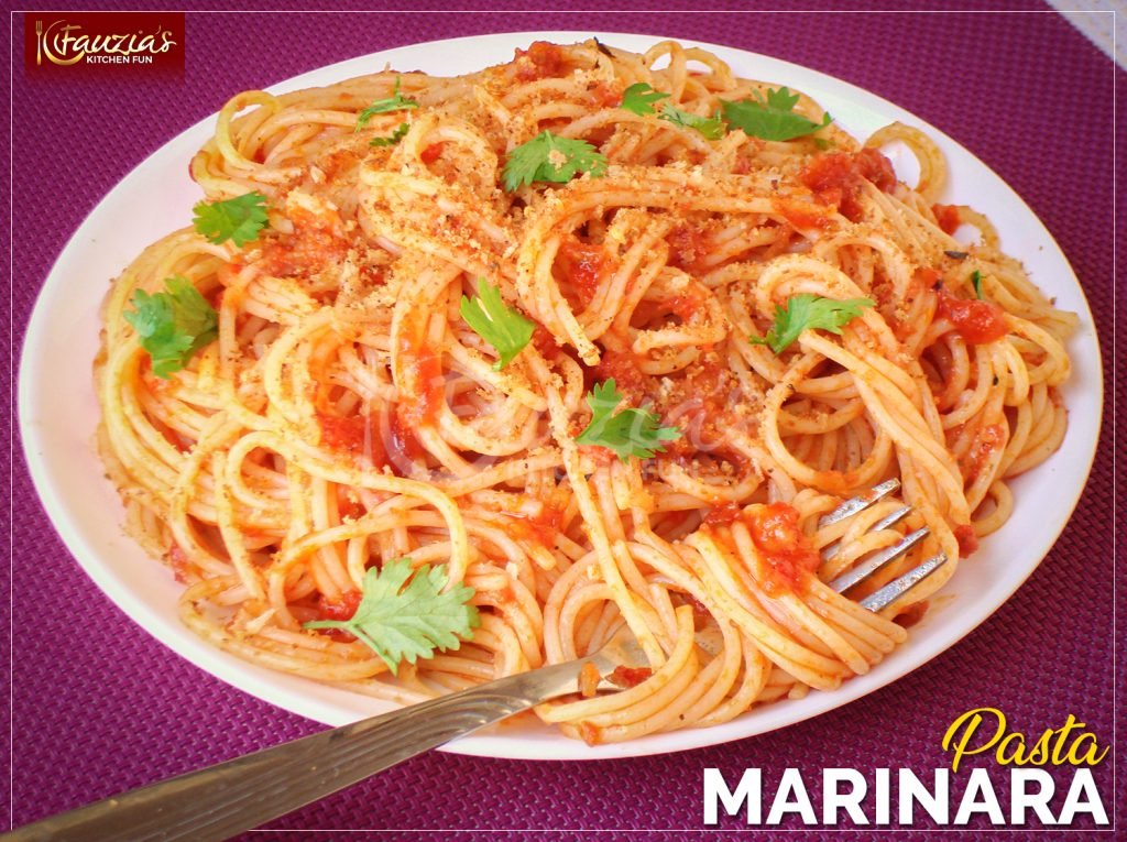 - Prepare the marinara sauce as per the recipe HERE.Prepare the spaghetti as per packet instructions. When draining, reserve about half a cup of the water used for boiling.Put the cooked spaghetti back into the pan, add the marinara sauce and pour in the reserved hot water. Toss well until the spaghetti is coated with the sauce. Serve onto plate and sprinkle with chopped fresh coriander and some crispy pangritata, link for the recipe HERE.Enjoy! Â
