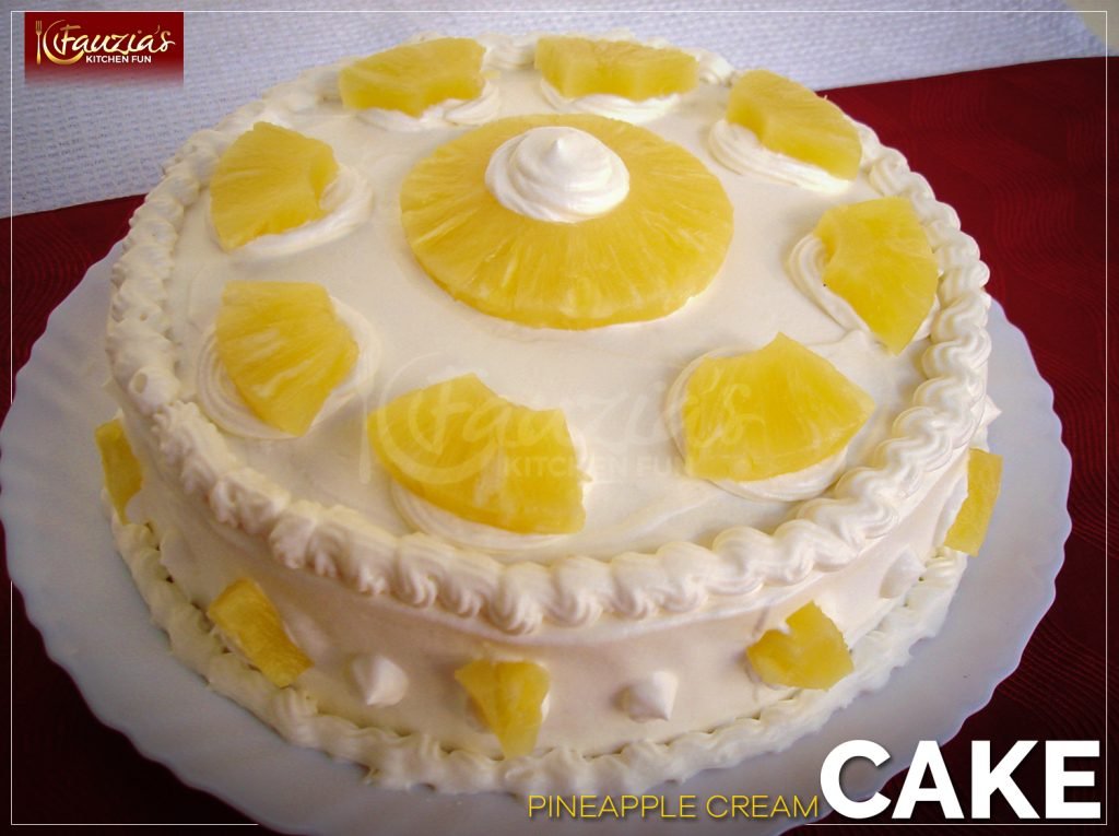 - Reserve 2-3 pineapple rings for the top garnish. Cut up the remaining into small pieces and drain well. You will need approximately 1 cup of chopped pieces for the cake center.Warm the pineapple juice in a small bowl in the microwave, then add the sugar and stir until it dissolves. Set this aside to cool for later.Prepare your cake pan by lining it with grease proof paper and greasing it to make sure the cake doesn’t stick. I used an 8 inch pan. You can use a slightly smaller one if you want a higher cake.Preheat your oven at 170 C.Put the butter and milk into a small bowl and set aside.Sift the flour twice to aerate it and set aside.Put the eggs in a big glass bowl, then add the sugar. Beat the eggs for 30 seconds. Then dip the bowl in a pan of hot water and keep beating on high speed for 2 minutes. Make sure that the egg mixture doesn’t get too warm, if you stick your finger in it, it shouldn’t be too warm. Remove from the hot water and now put the small bowl of butter and milk into the hot water and leave it there for the butter to melt slowly.The eggs will have started expanding from the beating. Keep beating for about 4 minutes until the egg mixture resembles cream. The beaters should leave streaks in the mixture as you whip, like how whipping cream looks at the ‘soft peak’ stage.Once you have reached this consistency, remove the beaters and use a whisk. Whisk the egg mixture for a few seconds.Now sift all the flour into the egg mixture. Using a spatula, GENTLY fold the flour in using 30 strokes or less. If you over mix or fold too vigorously, you will lose all the air that has built up in the eggs, so be gentle.When the flour is mixed, take the bowl of butter and milk that you had kept in the hot water. It should have melted by now. Add it into the batter. Also add your vanilla essence. Now fold again no more than 50 times or less until the batter is well combined and shiny.Pour into the prepared pan. Pick and drop the pan twice to remove any excess air bubbles. Then bake immediately. It should take about 23-25 minutes.Check using a toothpick or skewer, it should come out clean to indicate the cake is ready. Again pick and drop the pan twice to prevent it from shrinking as it cools.Now turn the pan over on a cake rack but do not remove the pan. Let the pan cool down until it is easy to handle with your hands without getting burnt.In the meantime, whip your cream with 2-4 tbsp. icing sugar and 1 tsp. vanilla essence. Adjust sweetness to your taste and set aside.Remove the pan from the cake, remove the greaseproof paper. Cut the cake in half, drizzle or brush the pineapple syrup all over the cut halves, then add cream followed by the pineapple pieces. Cover them with more cream, put the second half of the cake and cream the top. Decorate with pineapple pieces/rings.Chill until the cream sets and enjoy your yummy cake!Enjoy! 🙂