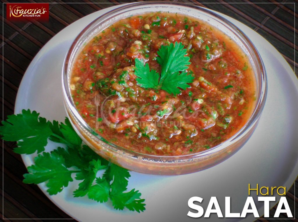 This is a speedy fresh sauce that is served with most Arabic rice meals which contains chicken or lamb.  It resembles a salsa and is normally not extremely hot, but since I love my food spicy I like to ‘up’ the amount of green chillis than what you would normally expect to find for this kind of yummy condiment.