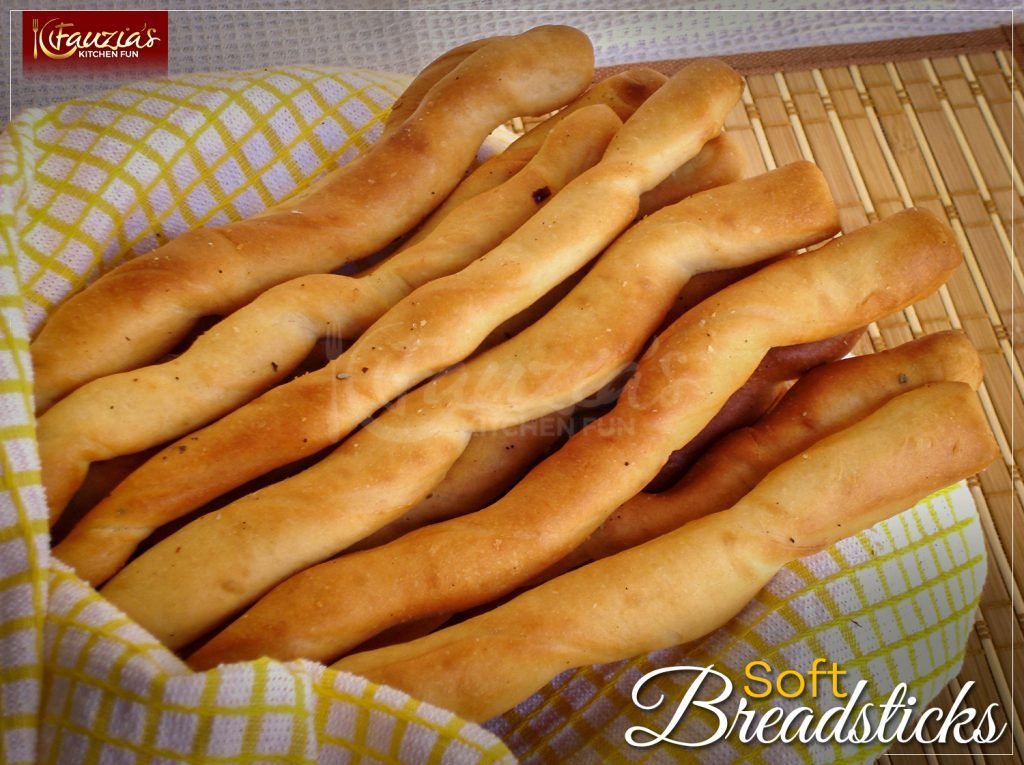 - Put the flour and yeast in a bowl, make a well in the centre. Add the oil, salt and sugar. Gradually add the warm water and knead well into a soft dough. Do not set the dough aside to rise, just rest it for about 10 minutes so that the gluten formed in the dough relaxes. Then roll the dough out on a floured surfaced into a 10×12 inch rectangle.Using a pizza cutter or sharp knife, cut into strips (less than an inch wide). Carefully lift each strip, give it a twist or two and place it on a greased baking tray. Allow them to rest and rise for about 30 minutes.In the mean time, preheat the oven at 180 C.Bake the breadsticks for about 10-15 minutes. When done, quickly brush them with the melted butter and you can lightly sprinkle the herb of your choice over them. You could even sprinkle them with finely grated cheese or if you want a garlic flavour, simply add a touch of garlic to melted better or sprinkle them with garlic salt. Put them under a towel until you are ready to serve.Enjoy!