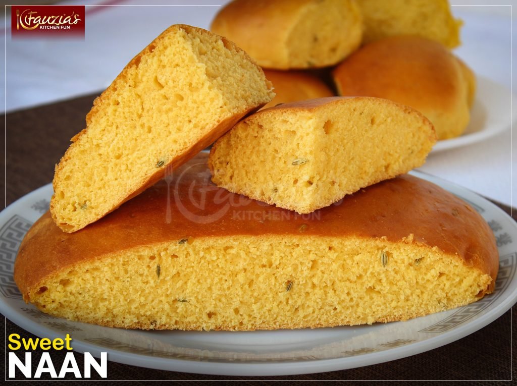 Sweet Naan is a soft yellow-coloured sweetened bread flavoured with fennel seeds and is a Ramadhan classic for those of us from certain parts of East Africa (mainly Kenya and Tanzania). The subtle sweetness and aromatic flavour of this delicious bread pairs beautifully with the spicy richness of either meat or chicken curry. It is also a wonderful accompaniment to our world-famous Kenyan Chai!This same recipe can either yield two classic sized sweet naans OR can be shaped into smaller scones. The fennel seeds can be omitted if one wants to make plain sweet Kenyan Style scones (which resemble Hawaiian bread rolls). Perfect for making mini party sandwiches or sliders! Or you can add raisins in the dough for a batch of fruity rolls that you could toast up, slather with butter and enjoy with a cup of hot tea.