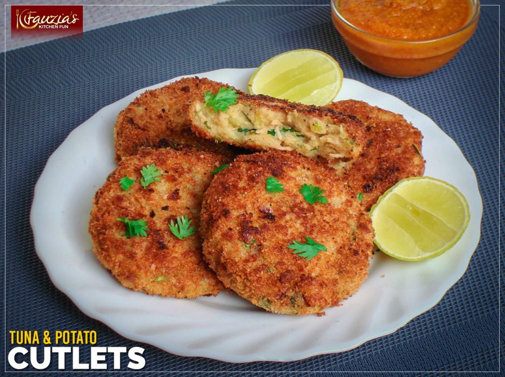 - Drain the tuna from the can in a strainer and set aside.Heat the 1 tsp oil or butter in a pan and then saute/fry the onions until they are soft but NOT golden. We just need to sweat them slightly. Add the ginger and garlic pastes, stir them in for a few seconds then turn off the heat. Allow the mixture to cool slightly.Put the mashed potatoes in a bowl, add the drained tuna, softened onions/garlic/ginger mixture, coriander, mint, chillies, salt, lemon and all the remaining spices. Mix everything well and give it a taste. Adjust salt/spice or lemon if needed.Shape round flattened patties out of the mixture. Dip each one in some beaten egg then in breadcrumbs. Shallow fry on both sides until golden and crispy.Drain onto dish towels and serve with a dip and some lemon/lime slices.Enjoy!Â