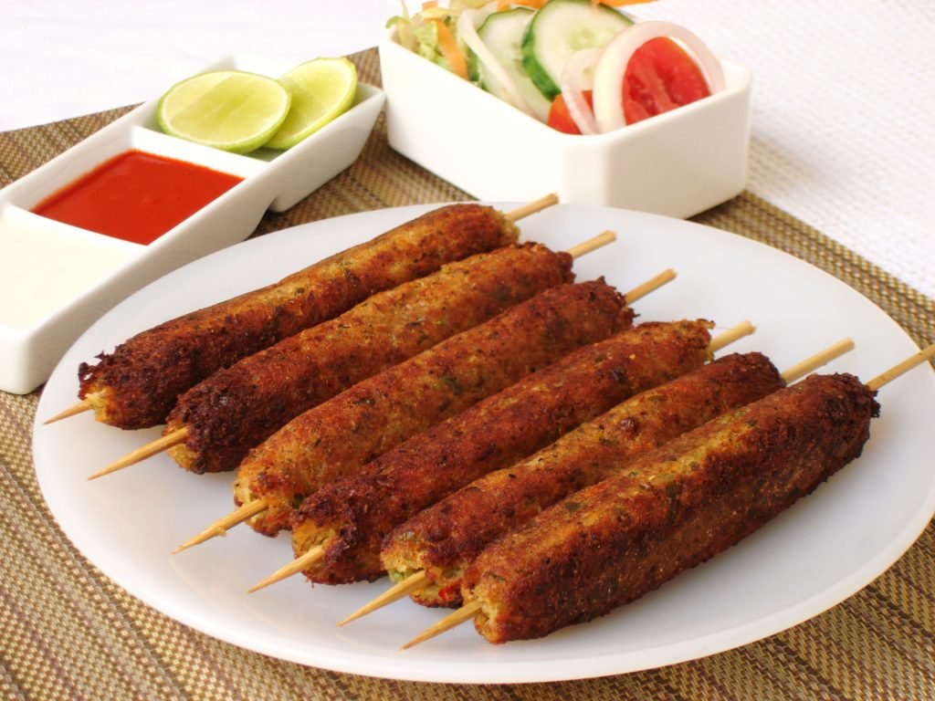 - Heat the oil in a pan, add the onions and saute for a couple of minutes. Then add the peas, carrots, green beans, cabbage, capsicum, chillies, ginger and garlic pastes. Stir fry them for no more than 5 minutes, just to slightly soften them. Then add the cumin powder, garam masala, turmeric powder, red chilli powder and black pepper. Give it a stir for another minute and turn the heat off. Put this mixture into a food processor and grind to a coarse consistency (not a completely smooth paste).Turn this mixture out into a bowl and add the mashed potatoes, gram flour, bread crumbs, lime juice and coriander. Mix everything together well. The consistency should not be sticky, it should be firm enough for you to be able to shape. If it feels sticky, add a bit more breadcrumbs.Cover the mixture and refrigerate for about half an hour. This helps the flavours develop and also makes the mixture easier to handle/shape.When ready, remove the mixture and shape the seekh kababs either on skewers or without skewers. Heat a pan with a little drizzle of oil and fry the seekhs, turning them to ensure all the sides are well coloured and crispy.Serve hot and crispy with a salad, chilli sauce, raita and some slices of lime to squeeze over them.Enjoy! 🙂